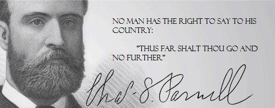At a meeting in Ennis, County Clare, of the ('Irish National') 'Land League', on the 19th September 1880 (a few months after he was elected 'president' of that organisation), Charles Stewart Parnell, whom the British described as "..combining in his person all the unlovable qualities of an Irish member with the absolute absence of their attractiveness...something really must be done about him...he is always at a white heat or rage and makes with savage earnestness fancifully ridiculous statements.." (but who was also looked at in a wary fashion by some of his own people as he was a Protestant 'Landlord' who 'owned' about 5,000 acres of land in County Wicklow and his parents were friends of and, indeed, in some cases, related to, Protestant 'gentry' in the Wicklow area) stated -